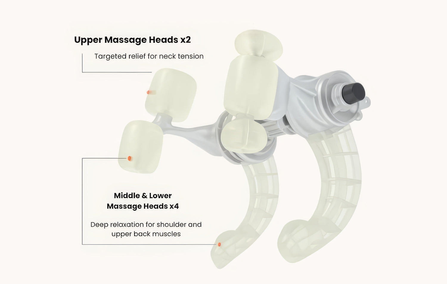 Ergonomic design ensures the 6 massage nodes reach deep muscle tissue exactly where tension builds. Professional results without guessing.